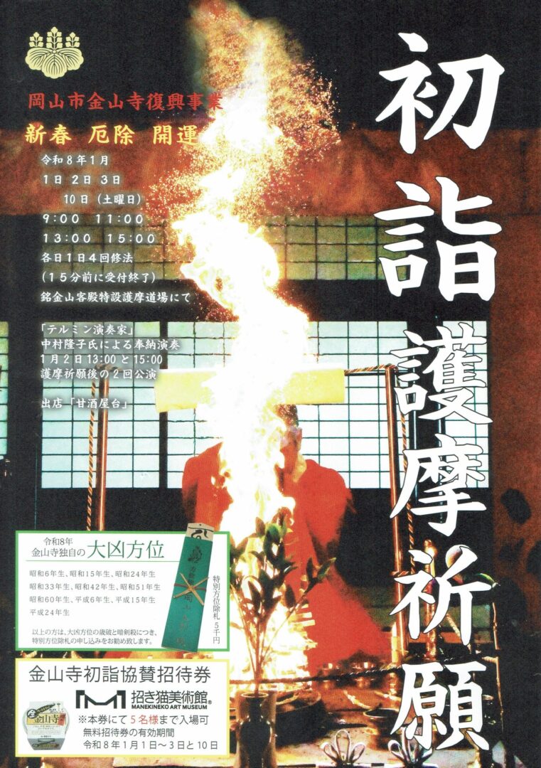 金山寺で毎年正月に行われる護摩祈祷に、今年も宇喜多秀家が出陣します!