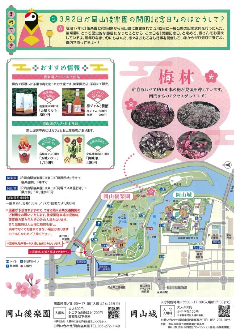 また、岡山後楽園でも「春のおもてなし」を実施予定。