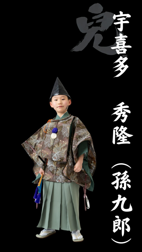 岡山城初代城主、宇喜多秀家の嫡男。関ヶ原での敗戦後、父と共に八丈島に流されるも、現世に蘇る。戦国武将が大好きで、クイズや紙芝居で日本の歴史を伝えている。