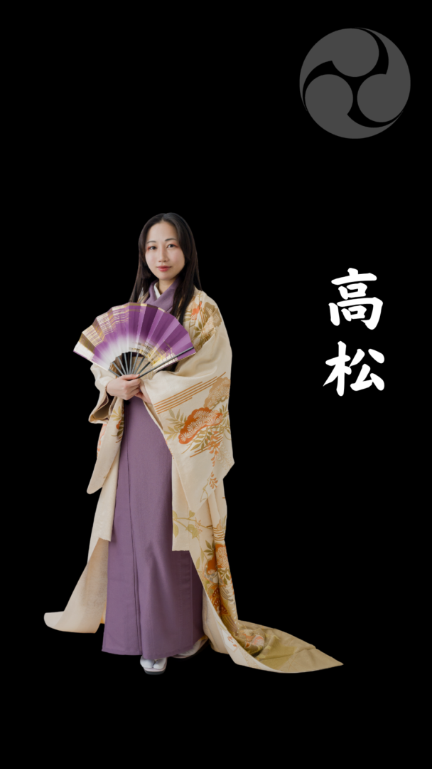 清水宗治の正室。備中高松城水攻めで夫(清水宗治)を失うも、夫が守った息子と共に戦国を生き抜いた。現在は蘇り、『高松殿の出陣おやつ』としてご当地お菓子を紹介している。